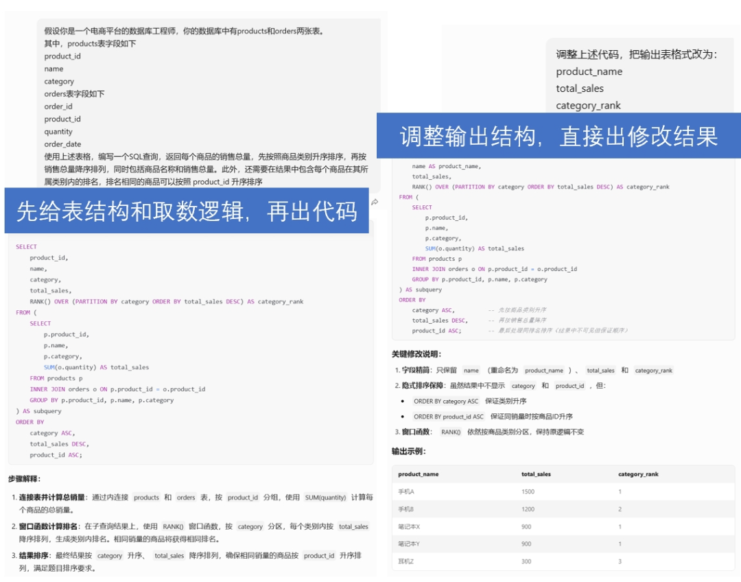 答:實際上,Deepseek能極大幫助數(shù)據(jù)崗位在給定表頭+取數(shù)邏輯的情況下, Deepseek給出的SQL代碼,準確度相當高,可以極大降低數(shù)據(jù)分析師日常跑數(shù)工作量(如下圖所示)。